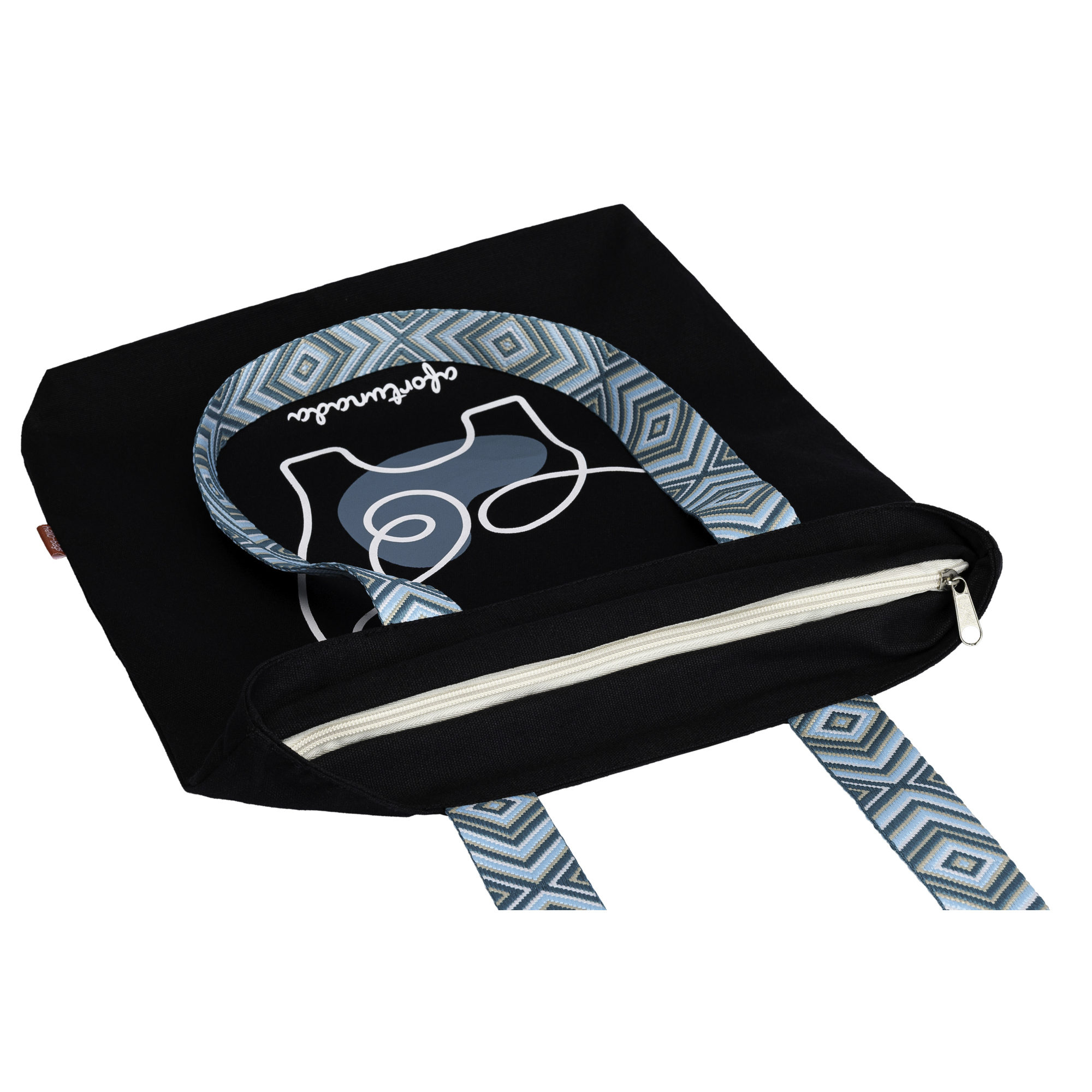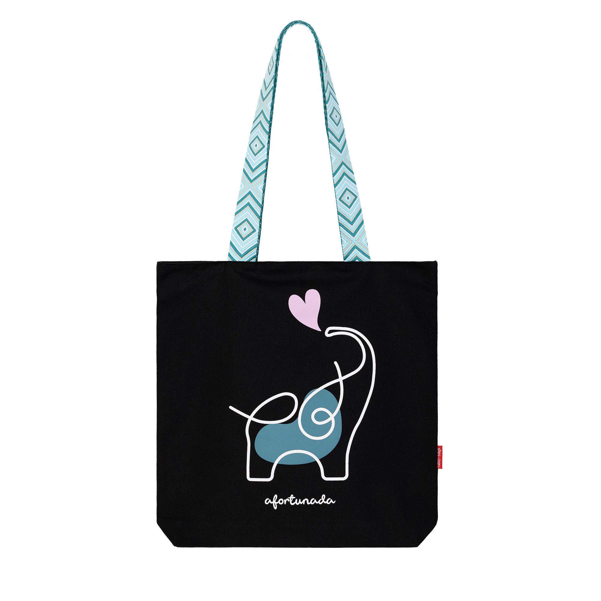 Bolso de tela o tote bag con cremallera, forro y bolsillo interior. Exterior: Algodón 100%. Incluye sobre kraft de regalo. Modelo: «Afortunada».